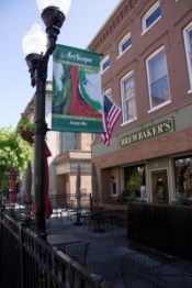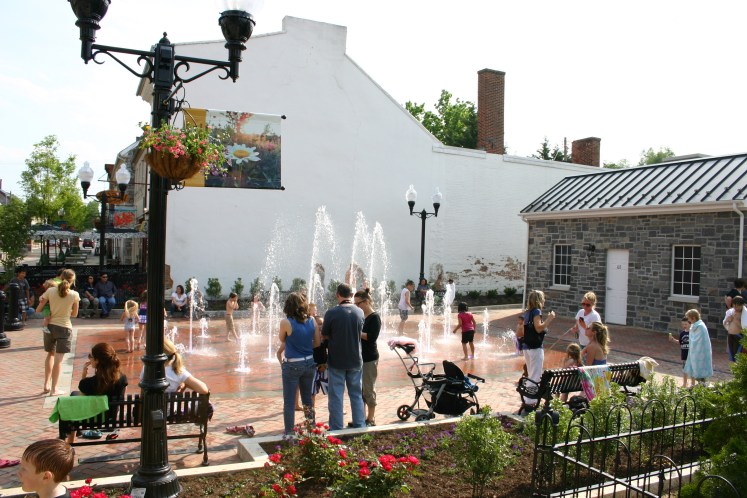 Old Town Winchester, host of the upcoming Virginia Main Street Downtown Intersections, creates an outdoor gallery experience through the Artscape program. An annual, juried art competition, Artscape reproduces selected artwork on banners that hang throughout the downtown. During the summer, young families are drawn to the downtown for a splash pad installation, which illuminates in the evening.