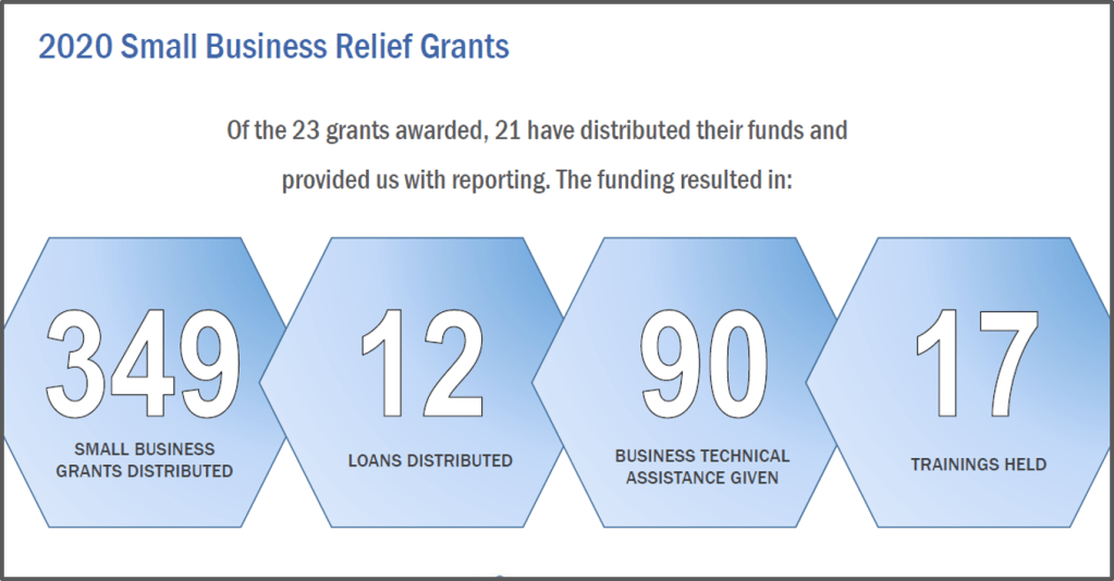 Each community came up with ways to best distribute the funding to support their small businesses and are now reporting the results to us. The grants have helped retain 343 businesses and 901 jobs across the state. Our Main Street directors are seeing the impact firsthand, telling us from Harrisonburg: “the grants have contributed to these 5 businesses staying afloat. Revenue is at an all time low for nearly every business. Every bit of capital helps to keep the lights on at this point to weather the storm,” and in Franklin: “all 28 businesses assisted by our SOS grant program coupled with support programs from our community partners remains in business and a large portion of them are on the path to growth.” We’ve compiled a full report here, check it out to learn more about the effect of the relief funding: