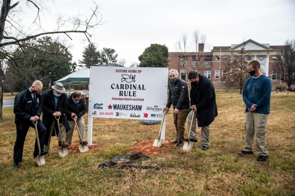 During the groundbreaking the team further discussed the plans for the property. The original elementary school, a three-story distinctive Spanish Colonial-Revival style building, will be transformed into a 30-room boutique hotel named Cardinal Rule. Work will begin on this in February and is expected to take about 18 months. The middle school, which suffered the damage from the fire, will be transformed into 60 market-rate apartments as Phase II of the project. Selective demolition has already taken place following the fire, with as much of the remaining structure being incorporated into the plans as possible. The former cafeteria will be utilized as a business incubator space and the gymnasium and fields will serve as athletic facilities.