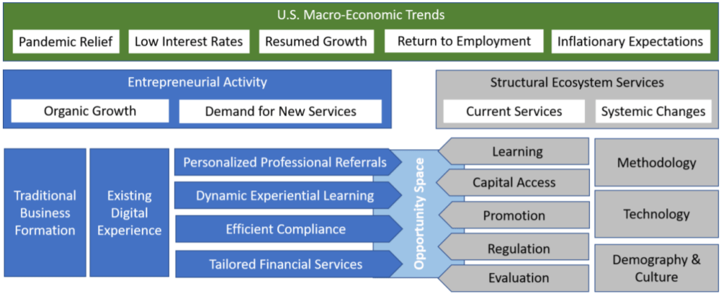 How should we think about new business formation and innovation in the post-pandemic environment, and what can we do now to prepare for it? In this post, I’ll lay out several of the trends impacting the entrepreneurial landscape, as well as some of the challenges and opportunity spaces for stimulating entrepreneurial activity.