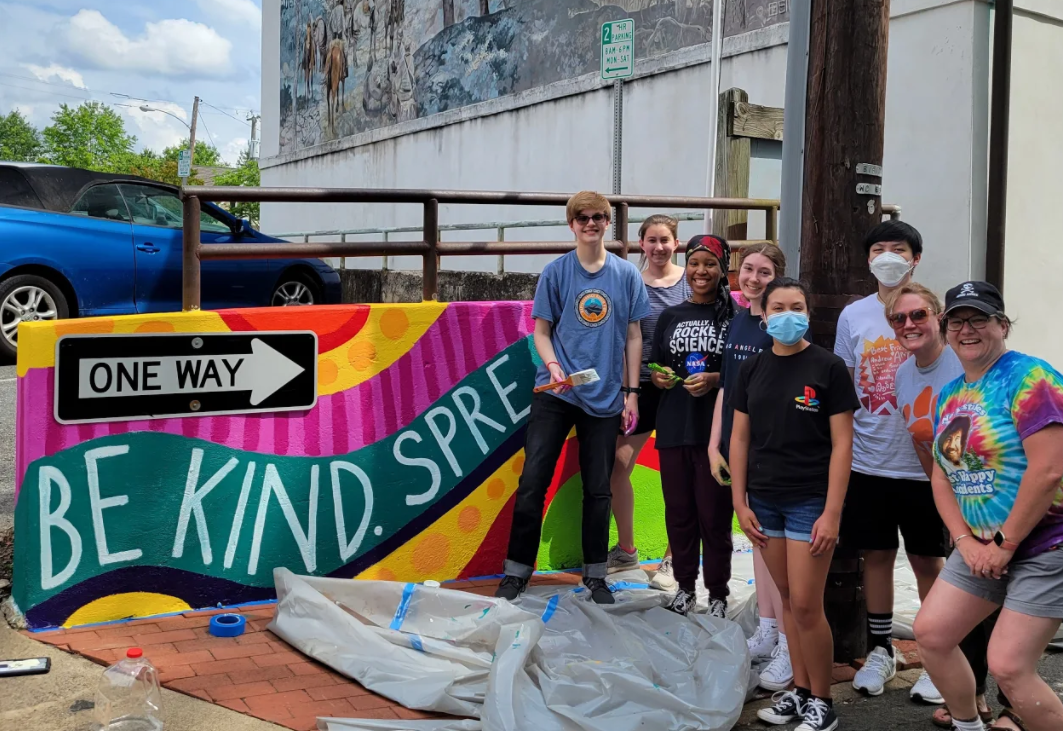 Recently, six talented Kettle Run High School students, all members of the National Art Honor Society, painted a whimsical and inspiring mural in Old Town Warrenton, spreading the simple message of “Be Kind. Spread Love.”