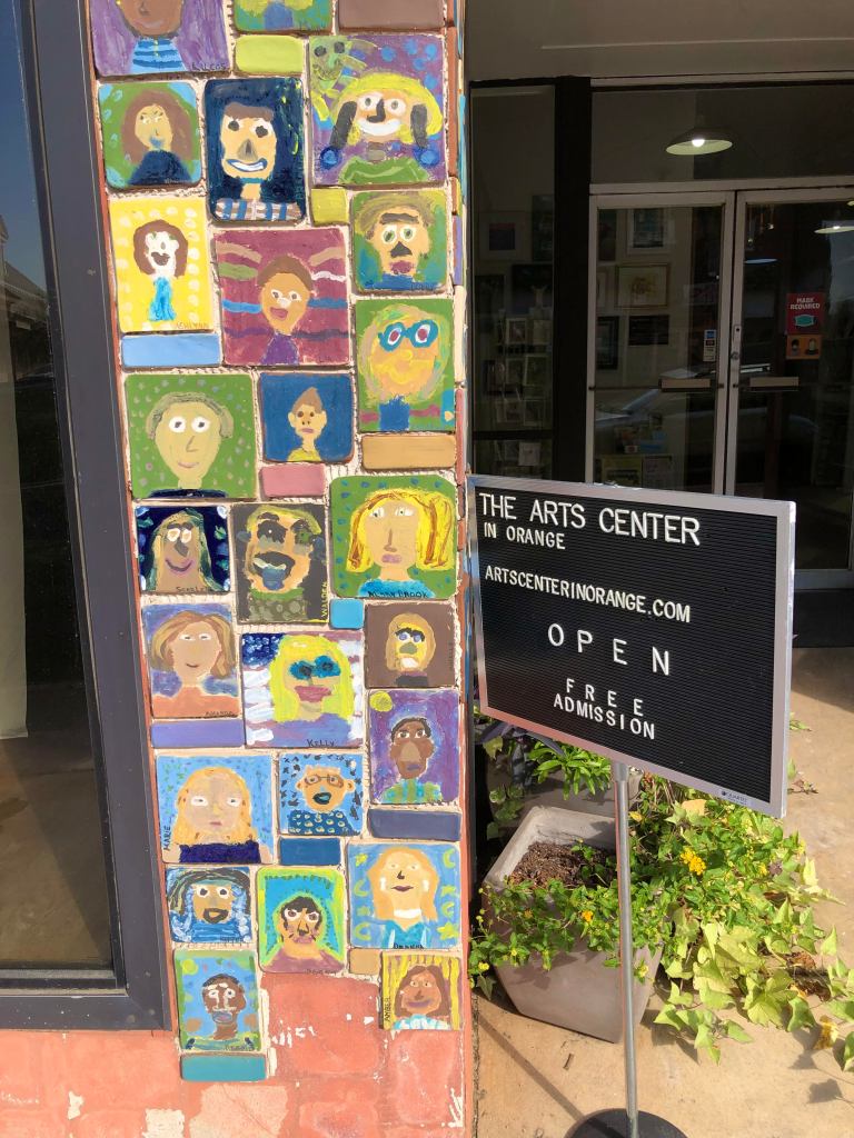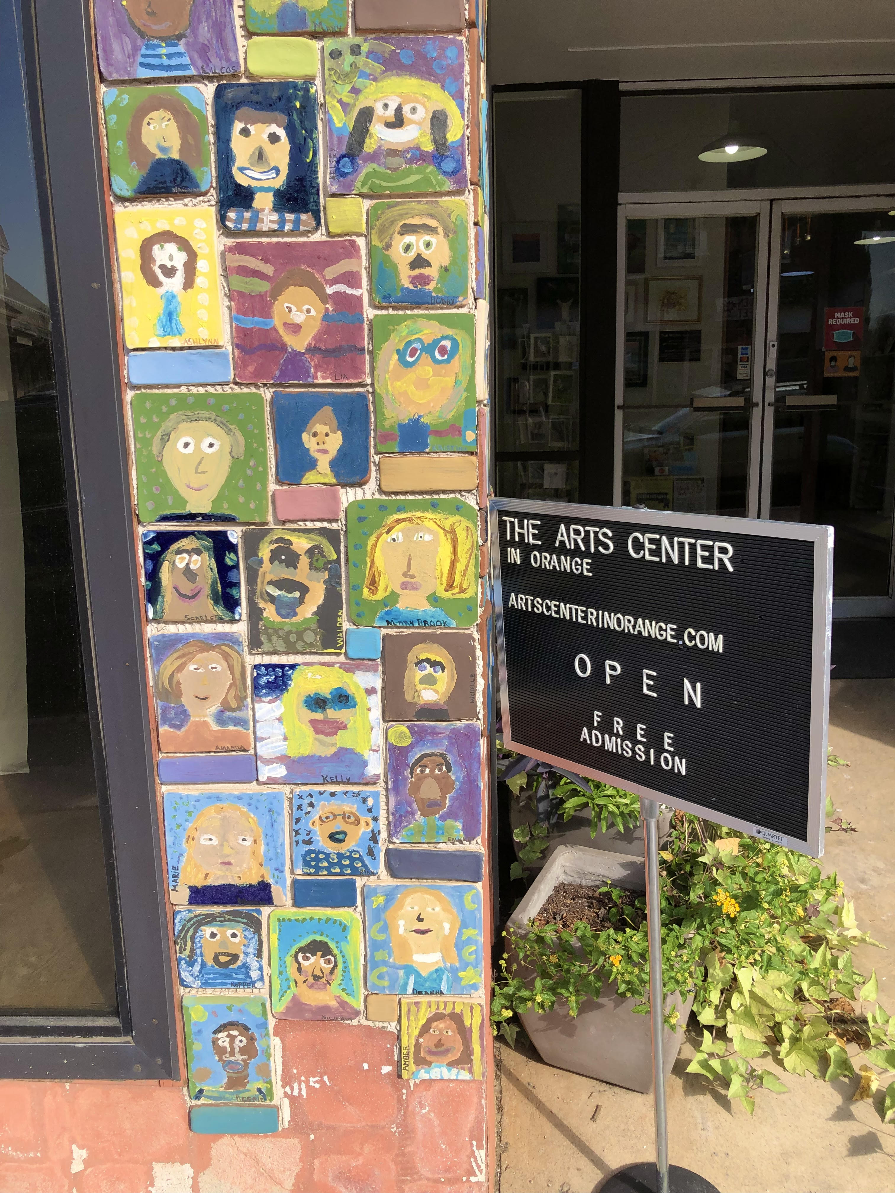 After a quick / fun history lesson, Charlotte and I made our way around downtown, and I was excited to visit The Arts Center in Orange, a venue for artists and artisans to work, teach, exhibit and sell their artwork. It’s also a place for the community to learn skills, and to participate in, as well as enjoy, the arts. Established in 1997, the Center began by offering classes and having small gallery shows in a series of buildings. In 2001, Bob Morin, retired businessman and former town mayor, graciously donated his building on Main Street to the Center, allowing them to expand programs and attendance, as well as respond to growing demand from local organizations and other entities to collaborate on projects and programs. The ceramic tiles seen on the building’s façade (pictured left) were created by county children to draw attention to the arts, and it was great to see the artistic downtown anchor finding ways to engage youth, embrace the community’s culture and outwardly celebrate local creativity!