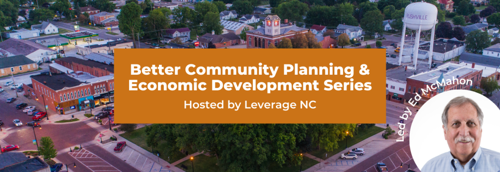 Recently, Leverage NC hosted a four-part webinar series, Better Community Planning & Economic Development, led by Ed McMahon, Chair Emeritus of Main Street America and a leading national authority on land use policy and economic development. The series explored the following:
