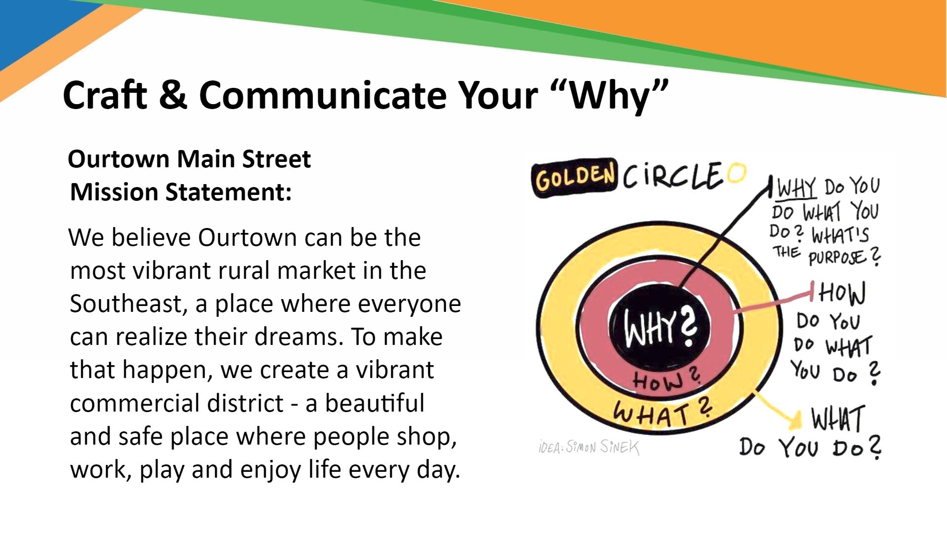 Organization involves creating a strong foundation for a sustainable revitalization effort, including cultivating partnerships, community involvement, and resources for the historic downtown commercial district.