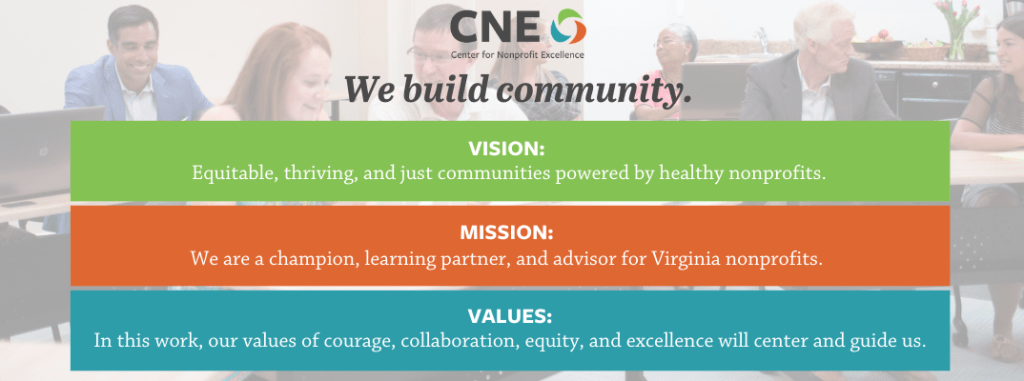 CNE is conducting this survey to gain a better understanding of the nonprofit landscape. Specifically, your feedback will be aggregated with the input of other nonprofits to help CNE and other capacity builders and funders across Virginia improve how they plan and invest in strengthening nonprofits and their communities.