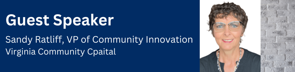 Sandy Ratliff, VP of Community Innovation at Virginia Community Capital, is a seasoned economic developer with over 30 years of experience serving the Commonwealth of Virginia. She works with new and expanding businesses to offer startup consulting, entrepreneurial growth mentoring, support community revitalization, and assist businesses in identifying sources of capital to move their business plans forward.