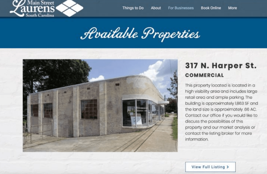 When marketing for sale properties, consider including the following; 1) A recent photo, 2) Square Foot Lease/Sale Price, 3) Contact information, 4) Zoning information, and 5) A link to more information (e.g., the relators website) at a minimum. See photo example below.