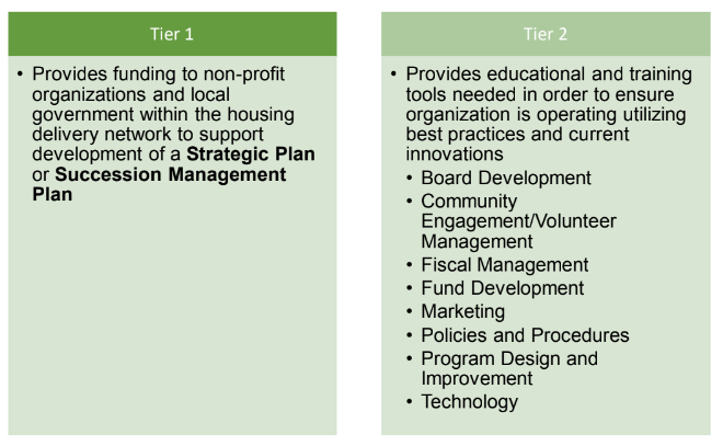 Capacity Building Grants | The Capacity Building program supports the development and strengthening for nonprofit operations, processes and resources. Funding is provided to develop strategic plans, succession management plans, training and educational tools.
