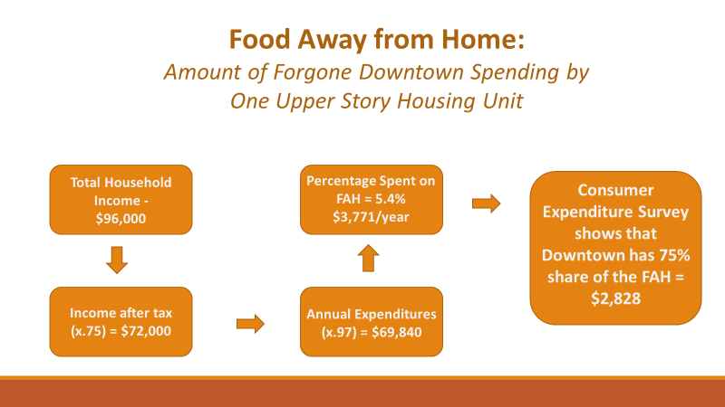 Household income can be used to calculate how much downtown spending could be captured if just one unit of upper-story housing was added above the vacant storefront.