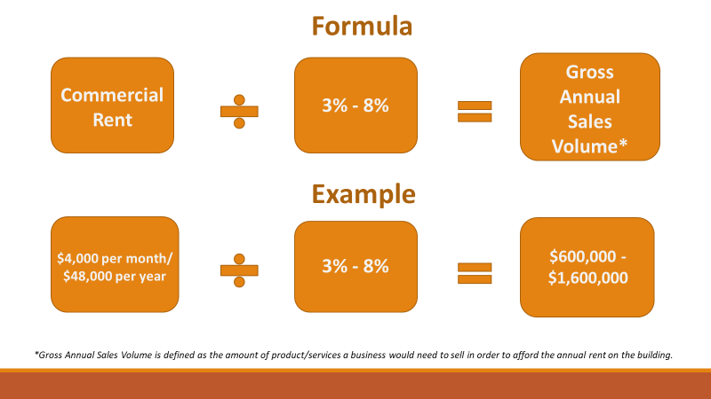 The commercial rent on a building can be used to calculate sales volume.