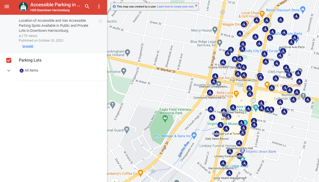 This is just one part of Harrisonburg’s larger accessibility initiative. To create a more welcoming downtown Harrisonburg for all, HDR offered ASL (American Sign Language) interpretation for their Levitt AMP Harrisonburg concert series, produced an accessible parking map (available on their website), and hosted a training for downtown business owners and employees. The training opportunity titled “Interacting with Grace and Confidence” was a customer-focused accessibility training facilitated by Valley Associates for Independent Living, Inc. (VAIL). HDR also offered funding for accessibility projects and purchases for downtown businesses through their existing Bricks & Clicks program. Andrea Dono, Executive Director, shared these inspiring initiatives at the 2024 Main Street Now conference in Birmingham, Alabama.