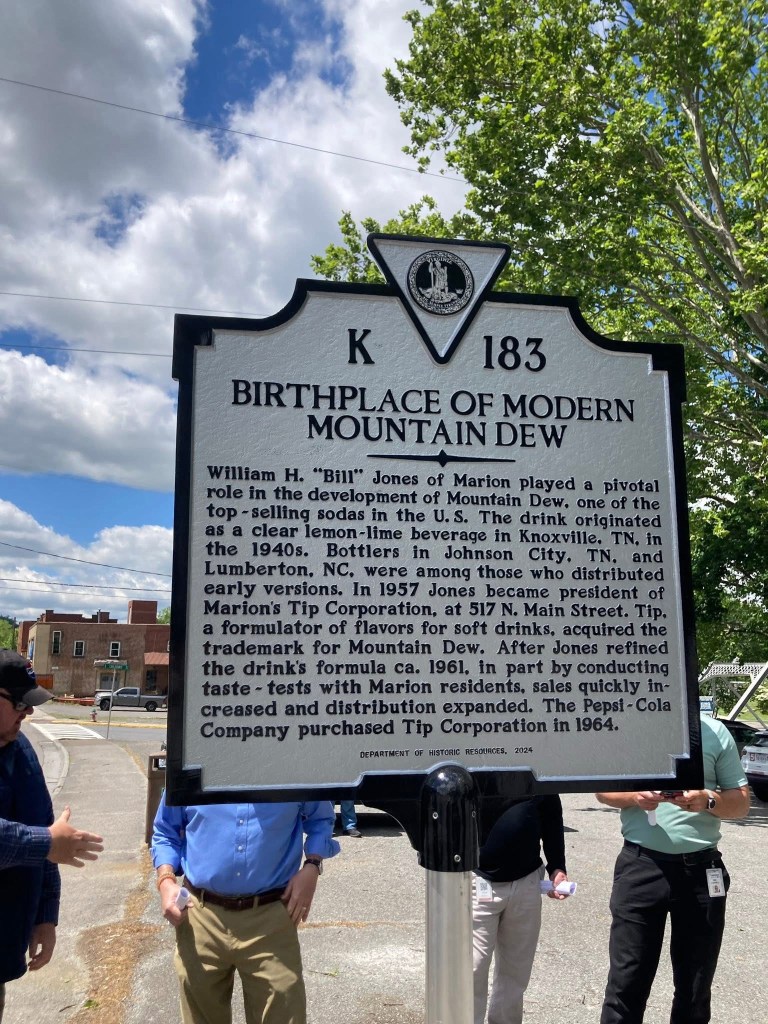 Today, the community is aiming to highlight this unique aspect of their history by establishing a Mountain Dew museum in downtown Marion. The Department of Historic Resources recently announced a historical marker showcasing the history of Mountain Dew in Marion. Plans are in motion to convert a former pharmacy and lunch counter into the future Mountain Dew museum that will contain a gift shop, a theater telling the story of the beverage, and Mountain Dew flavored drinks and food.